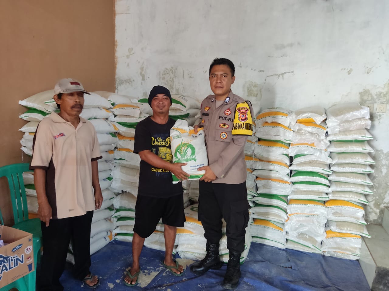 CIAMIS ~ Personel Polsek Lakbok Polres Ciamis Polda Jabar melaksanakan pengamanan kegiatan penyaluran bantuan beras cadangan dari Pemerintah di Desa Kalapasawit. Pengamanan ini dilaksanakan di Gor Desa Kalapasawit, Kecamatan Lakbok, Kabupaten Ciamis, Jawa Barat, Jumat (31/5/2024).