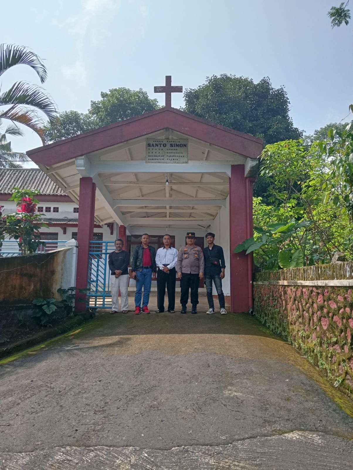 CIAMIS ~ Jajaran personel Polres Ciamis Polda Jawa Barat melaksanakan pengamanan kegiatan ibadah umat kristiani dalam peringatan Kenaikan Isa Al-Masih Tahun 2024 di wilayah Kabupaten Ciamis. Pengamanan ini dilaksanakan di sekitar Gereja Khatolik Santo Simon, Dusun Susuru, Desa Kertajaya, Kecamatan Panawanhan, Kecamatan Lakbok, Kabupaten Ciamis, Jawa Barat, Kamis (9/5/2024).