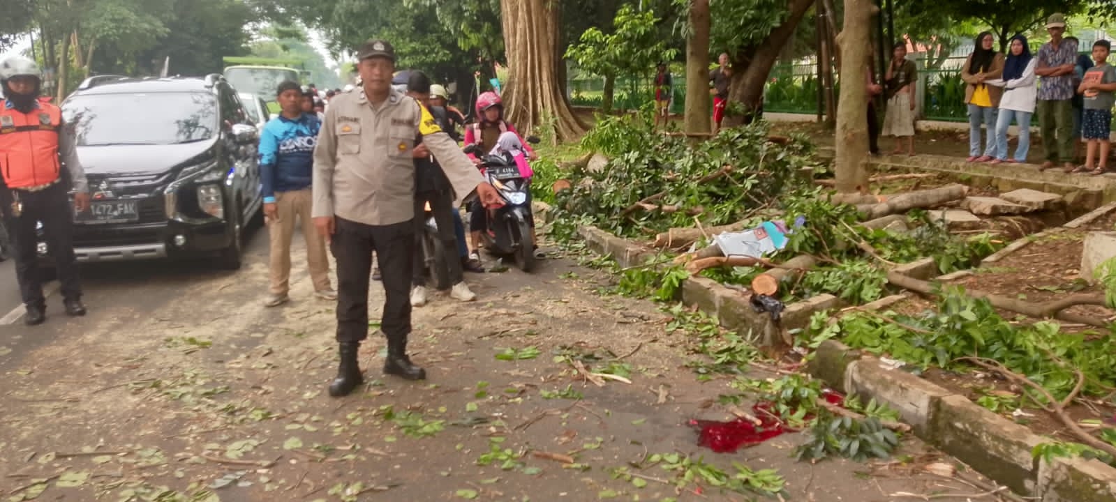 Jabar— Personil Polsek Bogor Tengah Polresta Bogor Kota Polda Jabar mendatangi lokasi kejadian pohon tumbang di Jl. Tentara Pelajar, Minggu (3/11/2024).
