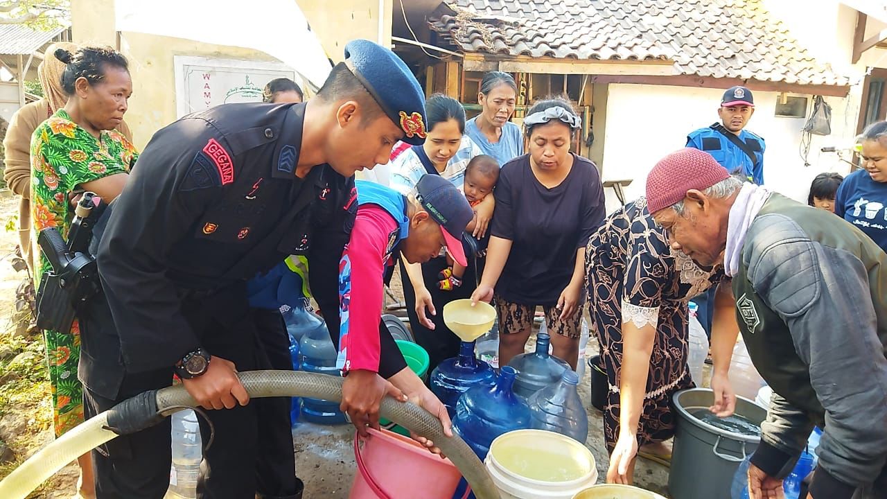 Sat Brimob Polda Jabar Beri Bantuan Air Bersih Kepada Masyarakat, Akibat Kekeringan Saat Kemarau