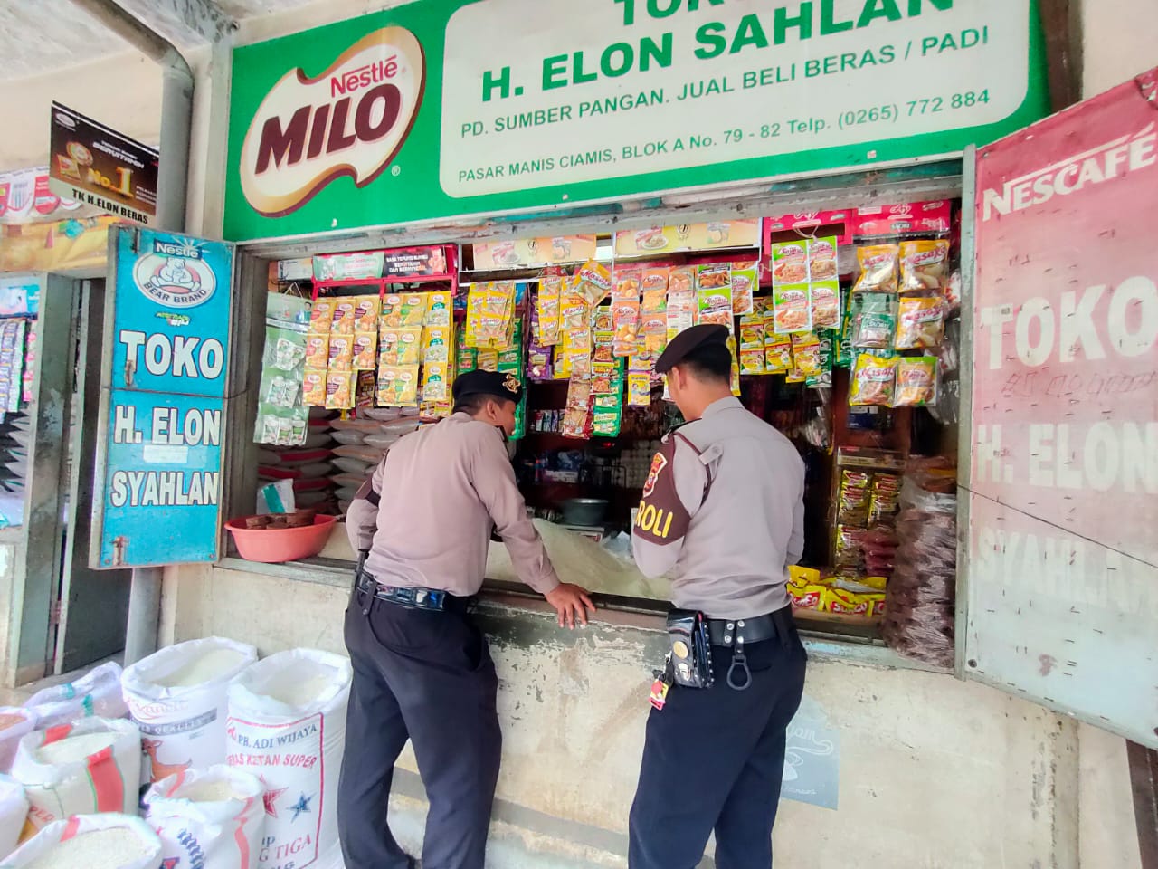Pemantauan harga bahan pokok ini dilaksanakan oleh personel Unit Patroli Satuan Samapta Polres Ciamis Polda Jabar. Kegiatan ini dibawah pimpinan AKP Cecep Edi Sulaeman selaku Kasat Samapta Polres Ciamis Polda Jabar.
