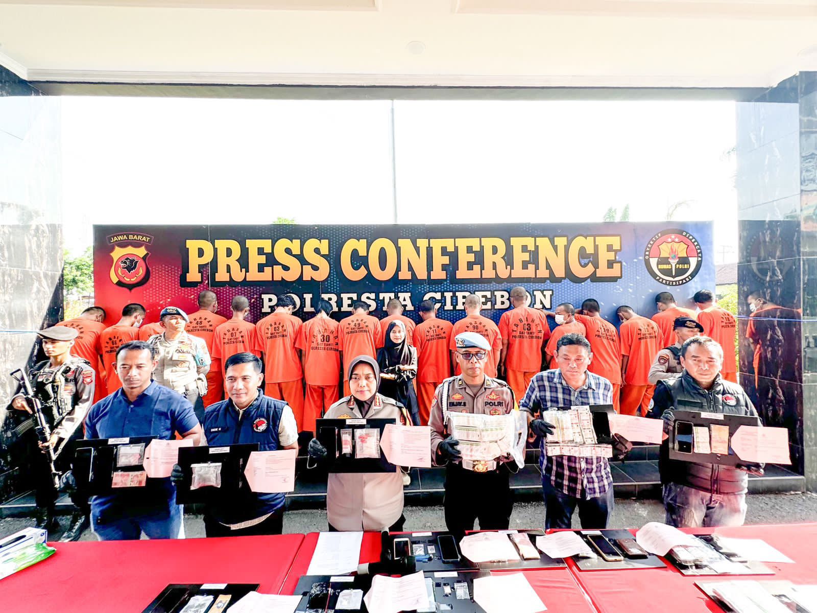 Jabar— Jajaran Satuan Reserse Narkoba (Satresnarkoba) Polresta Cirebon berhasil mengungkap 13 kasus peredaran gelap narkoba jenis sabu-sabu, ganja kering, tembakau sintetis, dan obat keras terbatas (OKT) di wilayah Kabupaten Cirebon. Petugas juga berhasil mengamankan 17 tersangka dari hasil pengungkapan kasus tersebut.