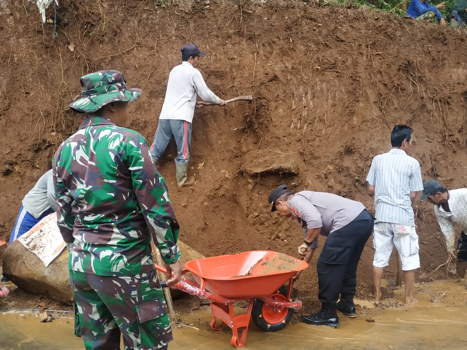 Tak hanya itu, anggota Polsek Cipaku Polres Ciamis, Koramil dan Kecamatan dilapangan juga membantu warga bergotong royong perbaikan pelebaran jalan dusun. Gotong royong yang dilakukan berupa pengerjaan pengecoran jalan dan anggota membantu memindahkan material.