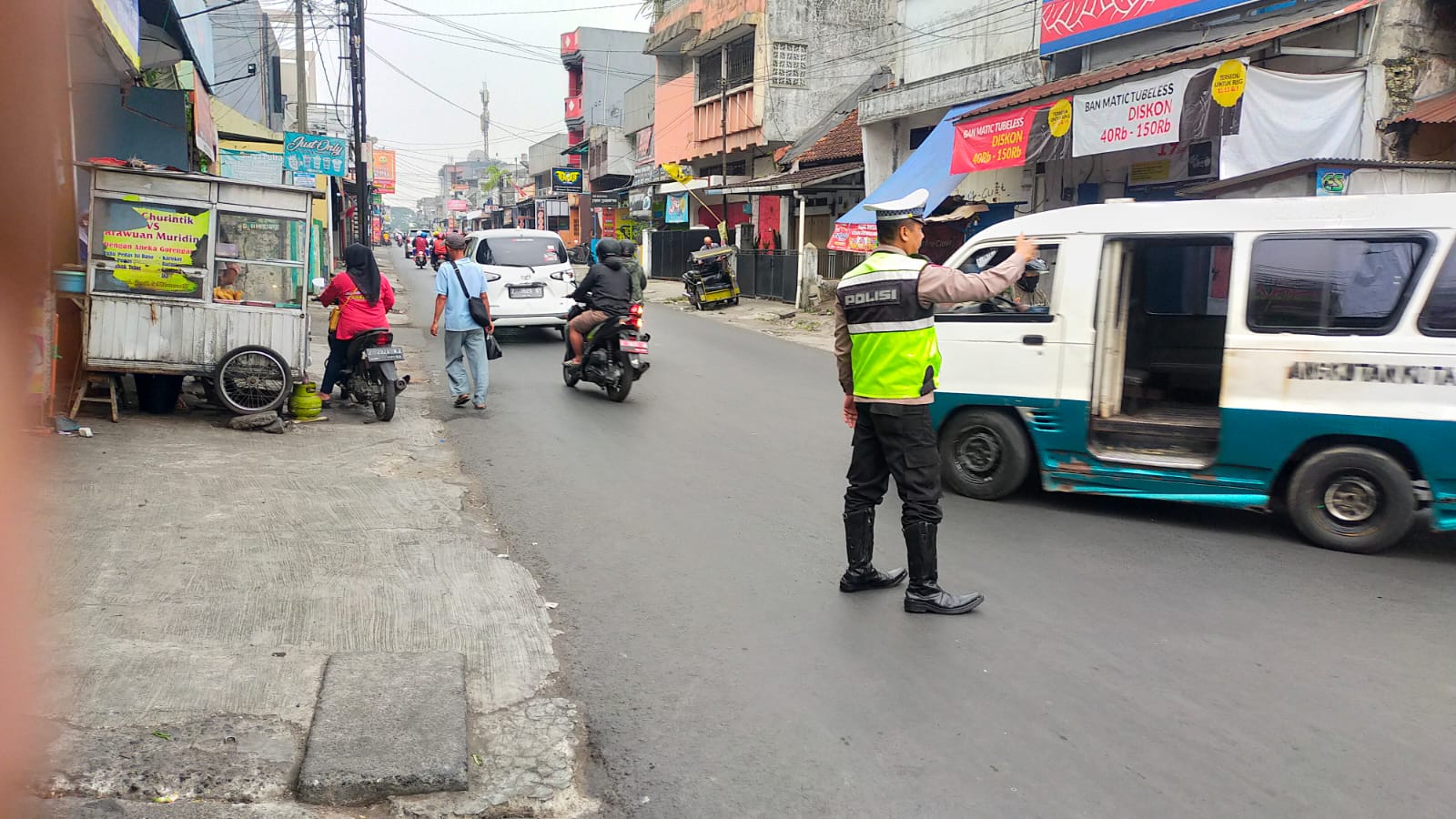 POLRES TASIK KOTA——Aiptu Joko Sujarwo melaksanakan Giat Gatur Pagi guna menjaga situasi kamseltibcarlantas di wilayah hukum Polsek Cihideung dan Sekitarnya serta sosialiasi progam dari pak Kapolres “Bebeja Ka Polres” pada hari selasa