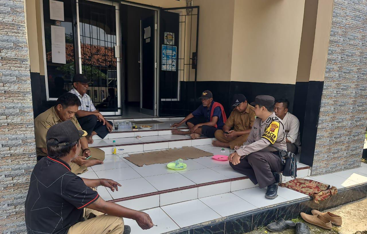 Dalam sambang tersebut Bhabinkamtibmas bertemu langsung dengan para perangkat desa halaman desa sambil ngopi bareng memberikan pesan untuk tetap menjaga keamanan desanya.