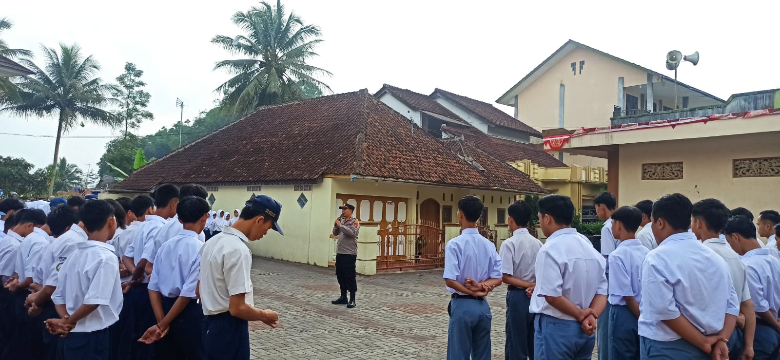 Polres Tasik Kota—- Panit 1 Binmas Polsek Indihiang bersama Bhabinkamtibmas Sukajaya melaksanakan pembinaan dan penyampaian himbauan kepada para siswa siswi SMP & SMK Mabdaul Ulum yang beralamat di kp.Leuwikidang Kel. Sukajaya kec. Bungursari.