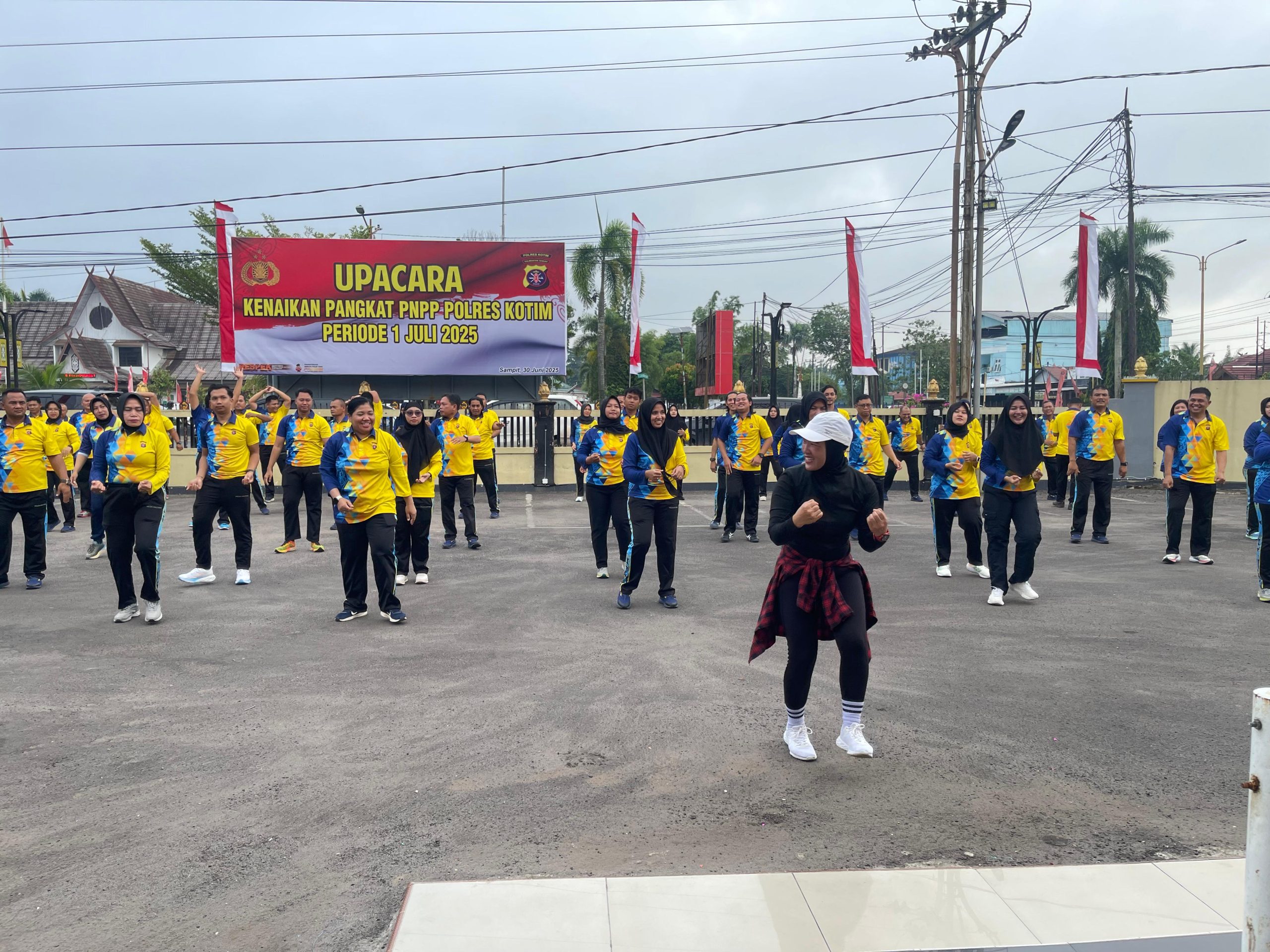 Sampit – Polres Kotim, Polda Kalteng, menggelar Fryday Sporting And Cleaning olah rags senam pagi dan konve bersama dengan Pejabat Utama (PJU) di Halamam Kantor Mapolres Kotim Jl Jenderal Sudirman Km 0 Sampit Kotim Jumat pagi (04/07/25).