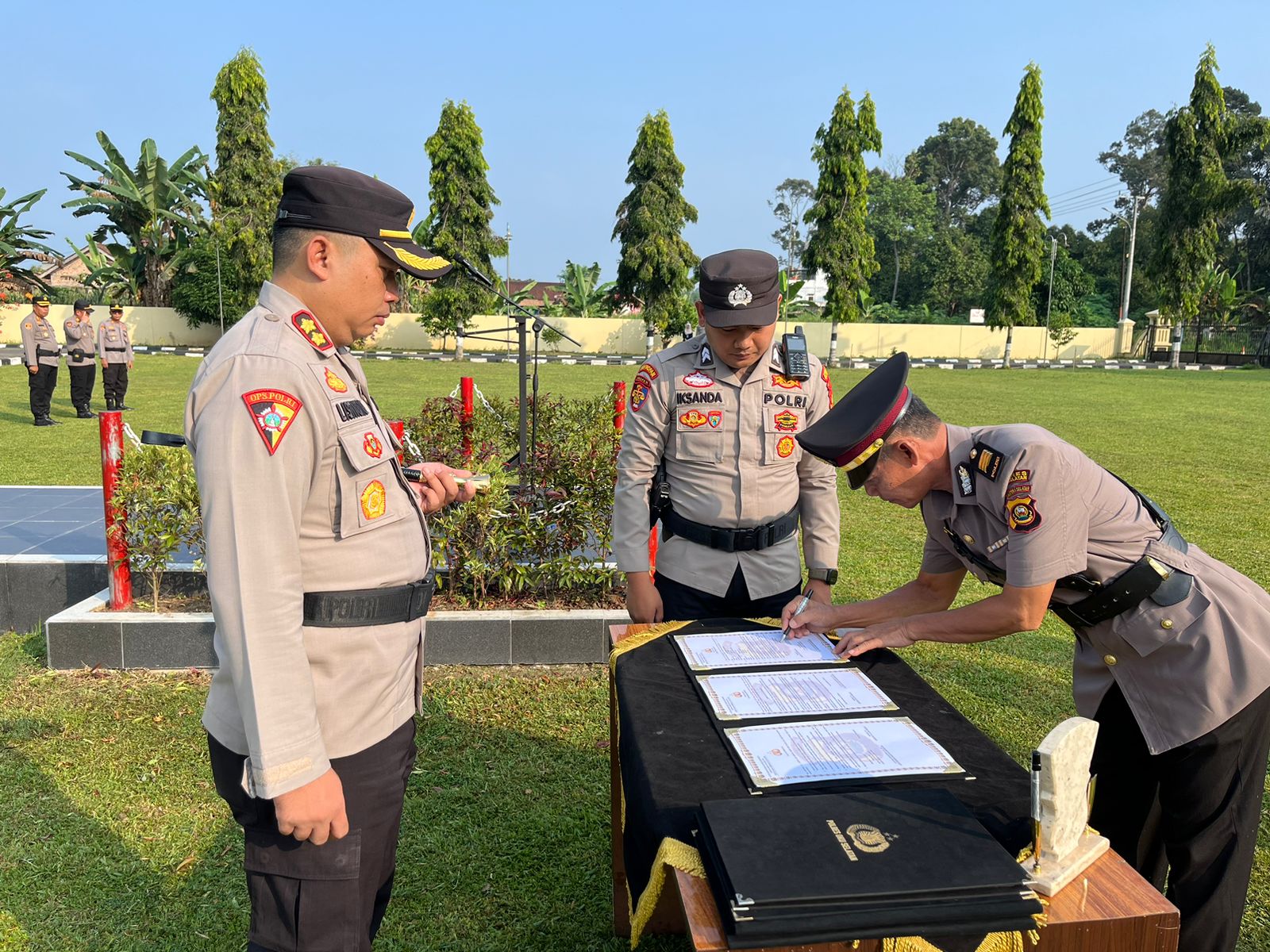 Di samping itu, Kapolsek Mekakau Ilir IPTU Guanasi, S.H., yang lama, dan IPTU Lyker Tambunan, S.H., dipercaya untuk memimpin Kapolsek Mekakau Ilir yang baru.