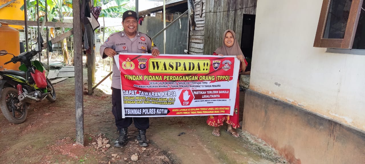Kotim- Personil Polsek Cempaga Polres Kotim (Kotawaringin Timur) jajaran Polda Kalteng, gelar sosialisasi terkait dengan Tindak Pidana Perdagangan Orang (TPPO), kepada warga Desa Cempaka Mulia Barat Kecamatan Cempaga Kabupaten Kotawaringin Timur. Minggu (28/10/2024) 10.30 wib.