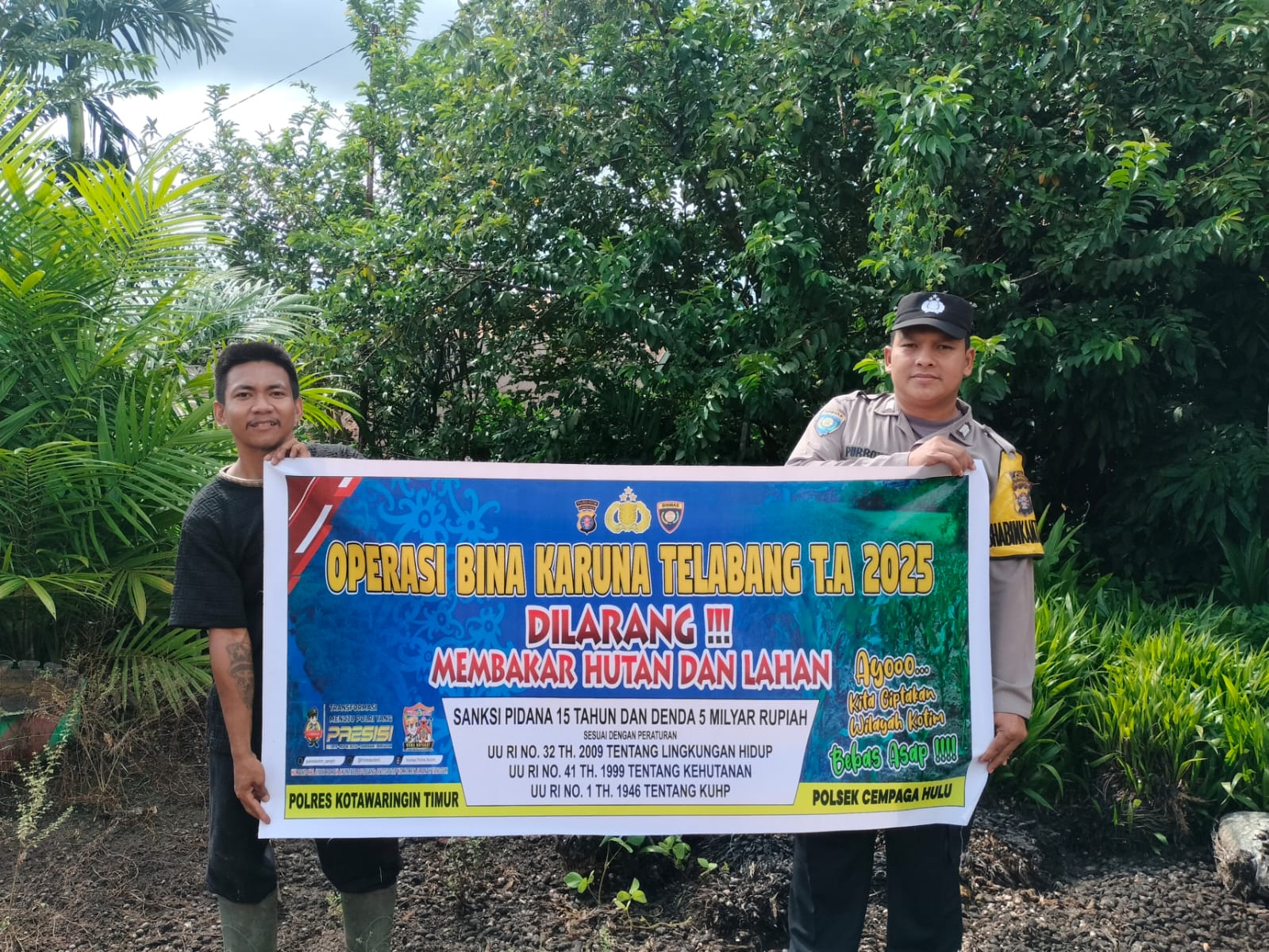 Kotim – Polsek Cempaga Hulu Polres Kotawaringin Timur jajaran Polda Kalteng meningkatkan sosialisasi dan himbauan larangan Karhutla di Desa Selucing Kec.Cempaga Hulu Kab.Kotim antisipasi terjadinya karhutla yang berdampak gangguan Kamtibmas , Kamis Pagi (26/06/2025)