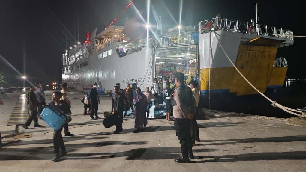KOTAWARINGIN TIMUR – Petugas piket Polsek KP Mentaya melaksanakan pengamanan debarkasi penumpang kapal KM Dharma Fery VI yang tiba dari Surabaya. Kegiatan pengamanan ini dilakukan pada hari Minggu, 16 November 2025, sekitar pukul 03.35 WIB, untuk memastikan kelancaran dan keamanan seluruh proses penurunan penumpang di Pelabuhan Sampit.