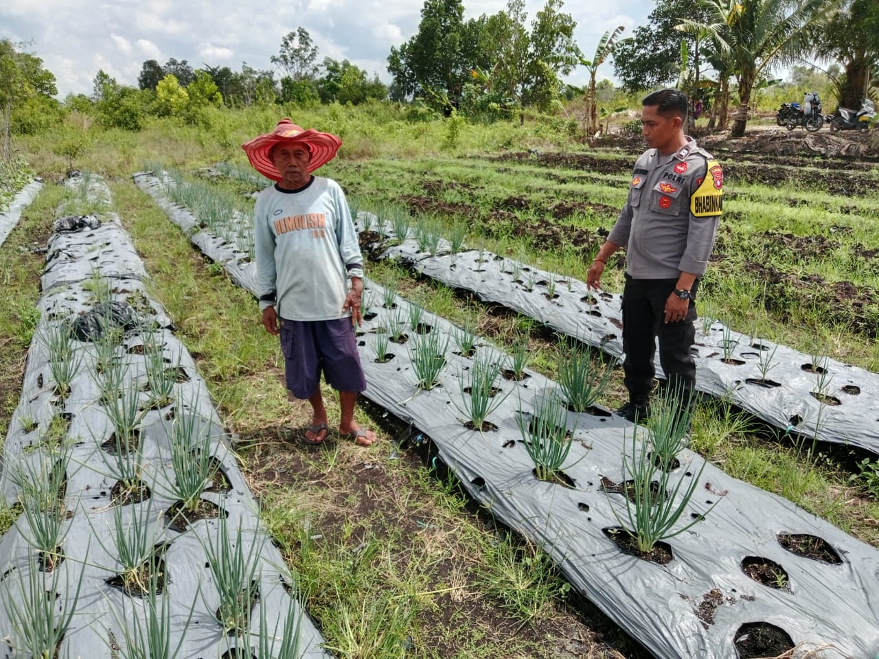 Bhabinkamtibmas Aiptu Agus Suryanto melakukan pengecekan kondisi lahan milik Sdr Maksum yang ditanami daun bawang terletak di Kelurahan Sawahan Kec MB Ketapang Kab.Kotim Prov.Kalteng,. Lahan ini menjadi bukti nyata upaya masyarakat dengan dukungan Bhabinkamtibmas Polsek Ketapang dalam mengelola sumber daya yang ada untuk memajukan ketahanan pangan lokal.
