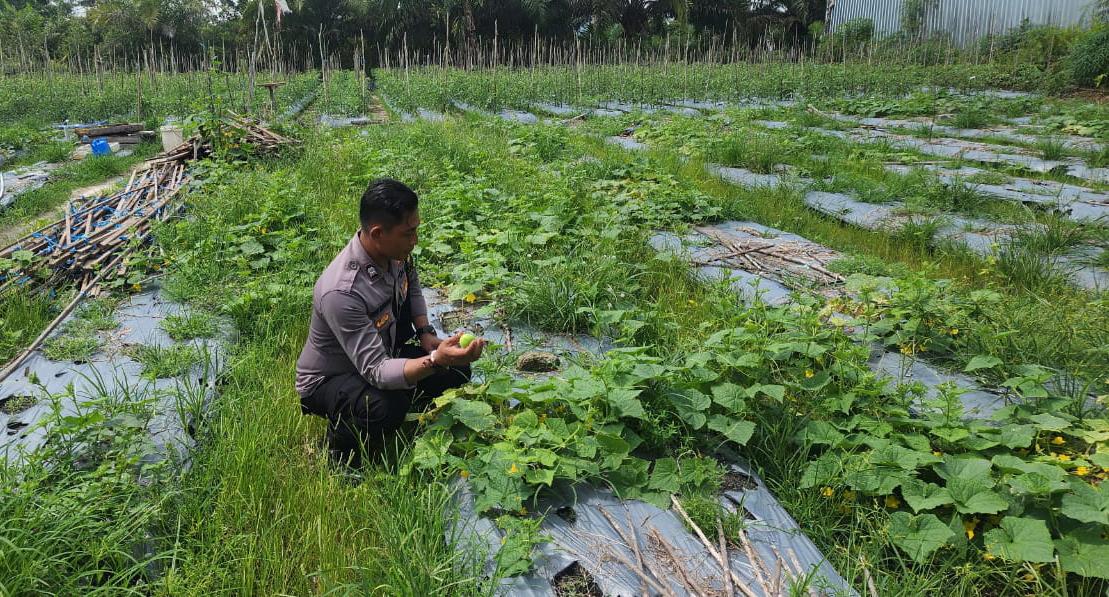 Bhabinkamtibmas Aiptu Agus Suryanto melakukan pengecekan kondisi lahan milik Sdr Kadar yang ditanami Ketimun terletak di jaln Pramuka Kelurahan Sawahan Kec MB Ketapang Kab.Kotim Prov.Kalteng,. Lahan ini menjadi bukti nyata upaya masyarakat dengan dukungan Bhabinkamtibmas Polsek Ketapang dalam mengelola sumber daya yang ada untuk memajukan ketahanan pangan lokal.