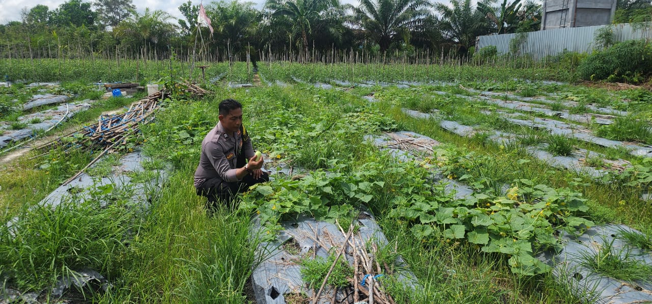 Bhabinkamtibmas Aiptu Agus Suryanto melakukan pengecekan kondisi lahan milik Sdri Marymah yang ditanami buah Melon terletak di Kelurahan Sawahan Kec MB Ketapang Kab.Kotim Prov.Kalteng,. Lahan ini menjadi bukti nyata upaya masyarakat dengan dukungan Bhabinkamtibmas Polsek Ketapang dalam mengelola sumber daya yang ada untuk memajukan ketahanan pangan lokal.