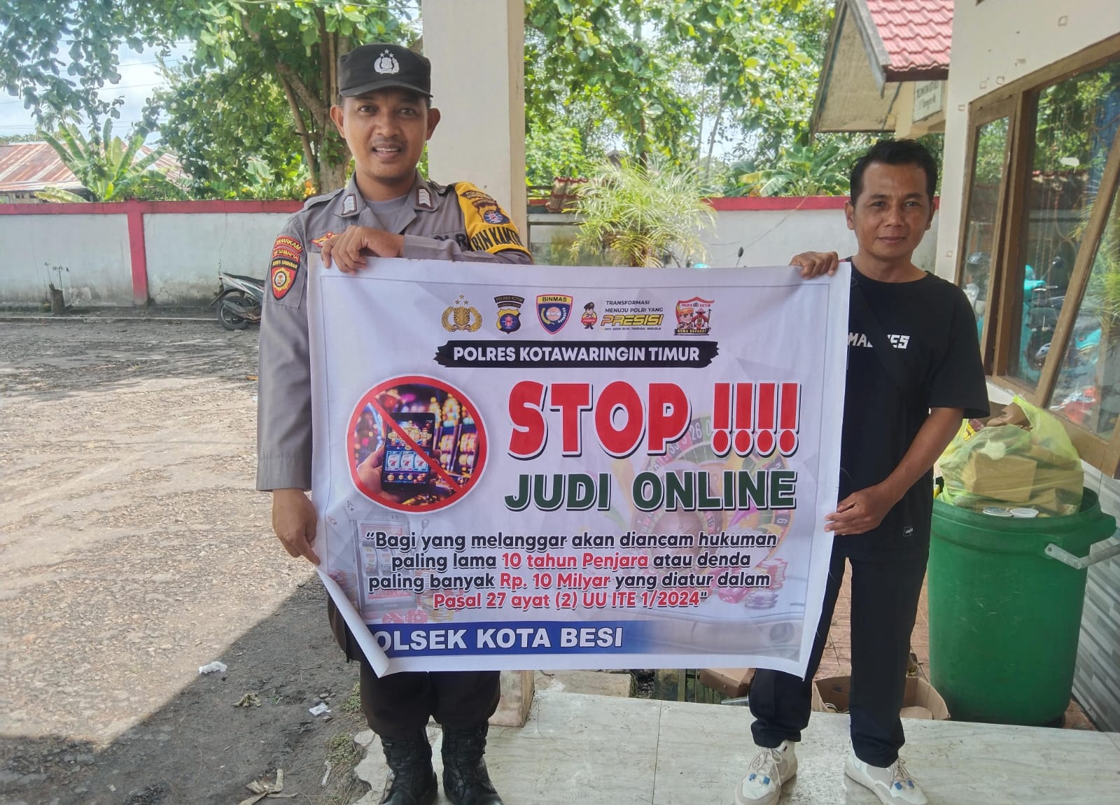 Personel Polsek Kota Besi memberikan pemahaman tentang ancaman pidana pelaku judi online dapat dipidana berdasarkan pasal 27 ayat (2) jo pasal 45 ayat (3) UU 1/2024 berupa pidana penjara maksimal 10 tahun dan/atau denda paling banyak Rp. 10 miliar.