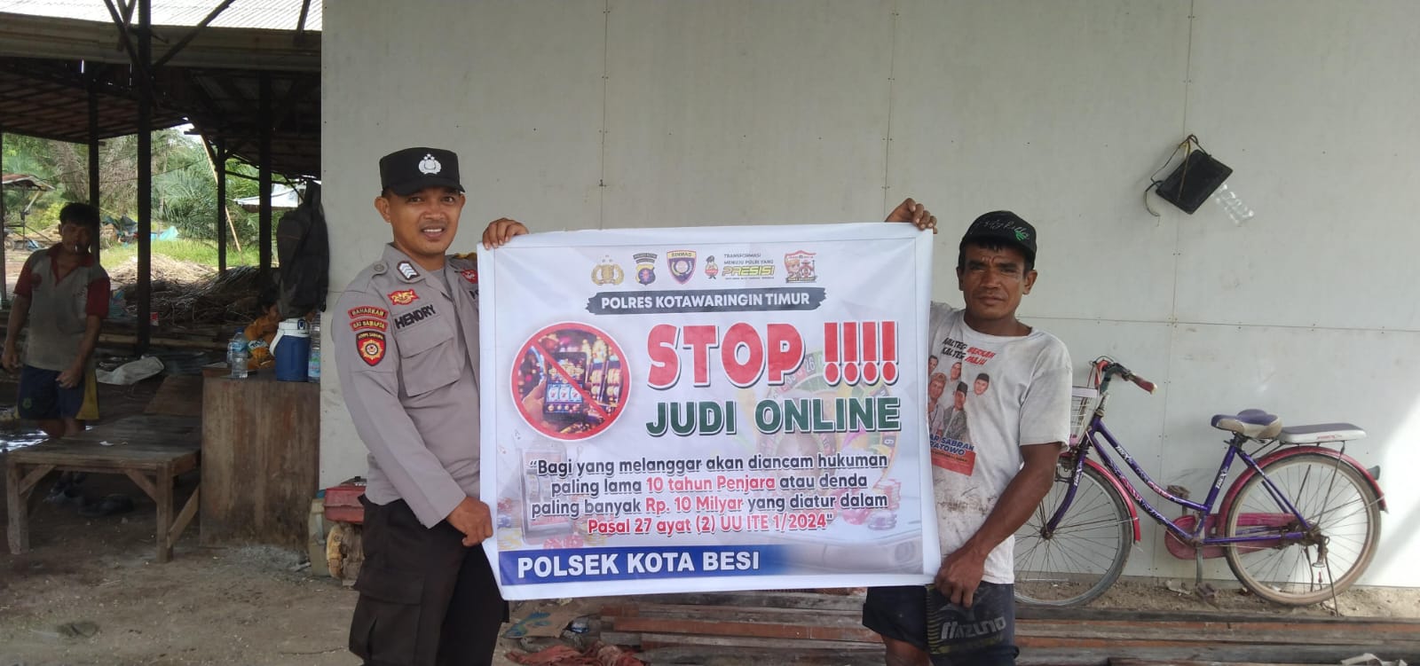 Personel Polsek Kota Besi memberikan pemahaman tentang ancaman pidana pelaku judi online dapat dipidana berdasarkan pasal 27 ayat (2) jo pasal 45 ayat (3) UU 1/2024 berupa pidana penjara maksimal 10 tahun dan/atau denda paling banyak Rp. 10 miliar.