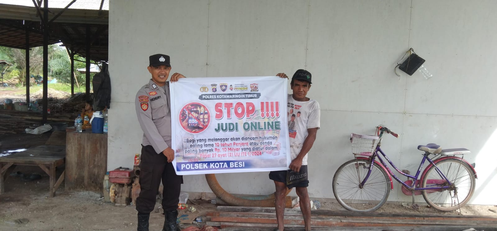Personel Polsek Kota Besi memberikan pemahaman tentang ancaman pidana pelaku judi online dapat dipidana berdasarkan pasal 27 ayat (2) jo pasal 45 ayat (3) UU 1/2024 berupa pidana penjara maksimal 10 tahun dan/atau denda paling banyak Rp. 10 miliar.