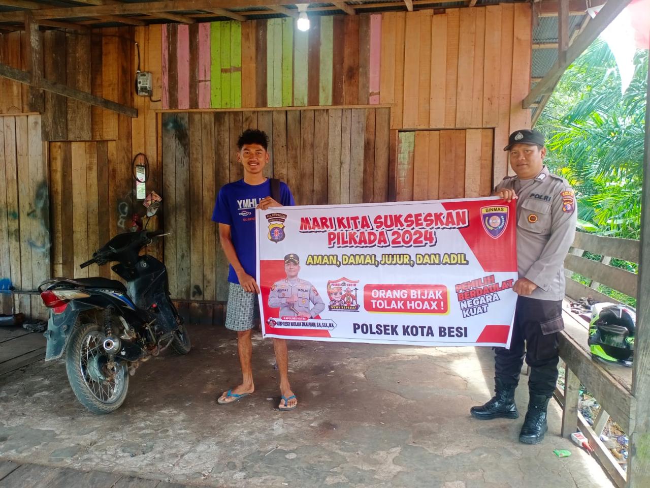 Dalam kegiatan tersebut personel Polsek Kota Besi mengajak masyarakat untuk bersama-sama menciptakan suasana dan stabilitas keamanan menjelang Pilkada 2024 aman dan Damai.