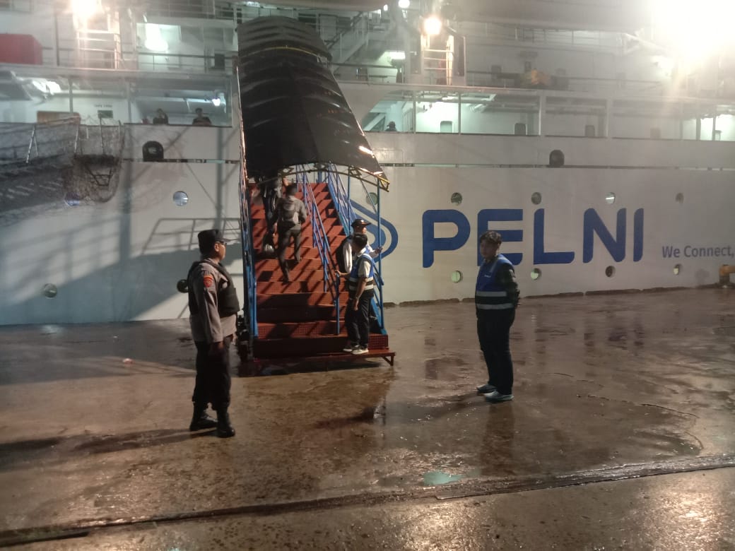 Kotawaringin Timur jajaran Polda Kalteng melakukan Pengamanan dan Pengawasan Perjalanan Orang di Pelabuhan Pelindo Sampit ,Senin(29/9/2025)malam
