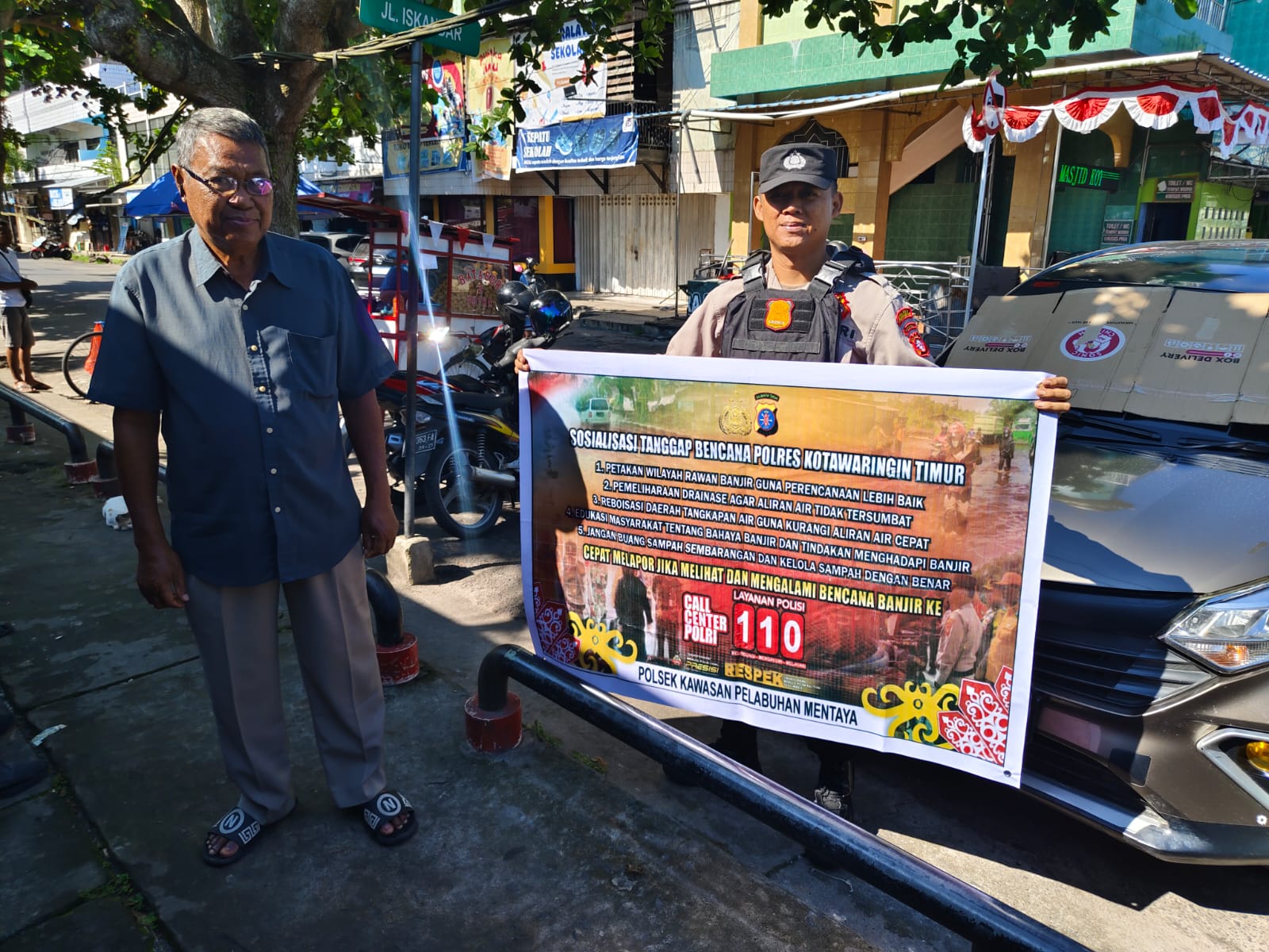 Selain sosialisasi tanggap bencana, personel Polsek KP. Mentaya juga kembali mengingatkan masyarakat tentang kemudahan akses pelaporan kejadian atau kondisi darurat melalui layanan resmi Polri.