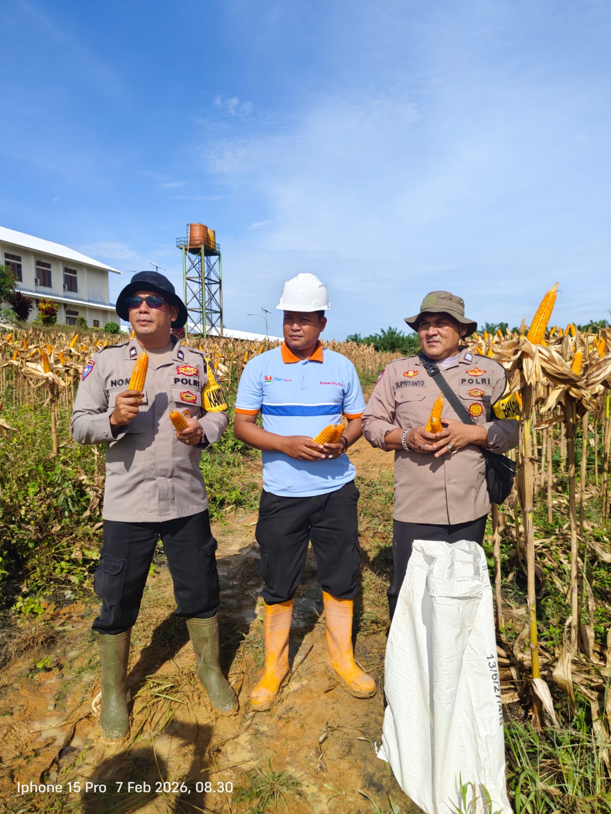 Dalam kegiatannya kali ini,buka hanya tanam jagung,namun panen jagung pun tidak luput dari dampingan anggota Polsek Parenggean.