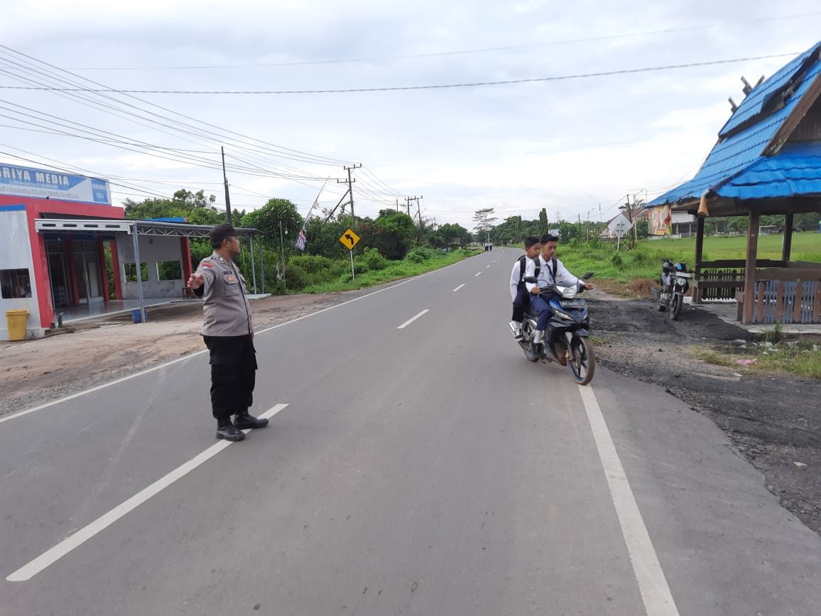 Kali ini, Personel Polsek Sungai Sampit Aipda Ronie Saputra beserta Petugas Bhabinkamtibmas melakukan pengaturan di Depan SMPN 1 MH. Utara Jl. HM. Arsyad Km. 27 Desa Bagendang Hulu Kec. Mentaya Hilir Utara Kab. Kotim, Senin (3/6/2024) pukul 06.30 WIB.