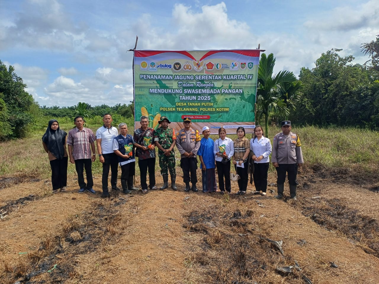 Kotim – Polsek Telawang Jajaran Polres Kotim Polda Kalteng melaksanakan kegiatan Penanaman Jagung Serentak Kuartal IV satu desa satu hektar dilahan Desa Tanah Putih Kec. Telawang Kab. Kotim, Rabu Pagi (08/10/2025) pukul 09.00 WIB.