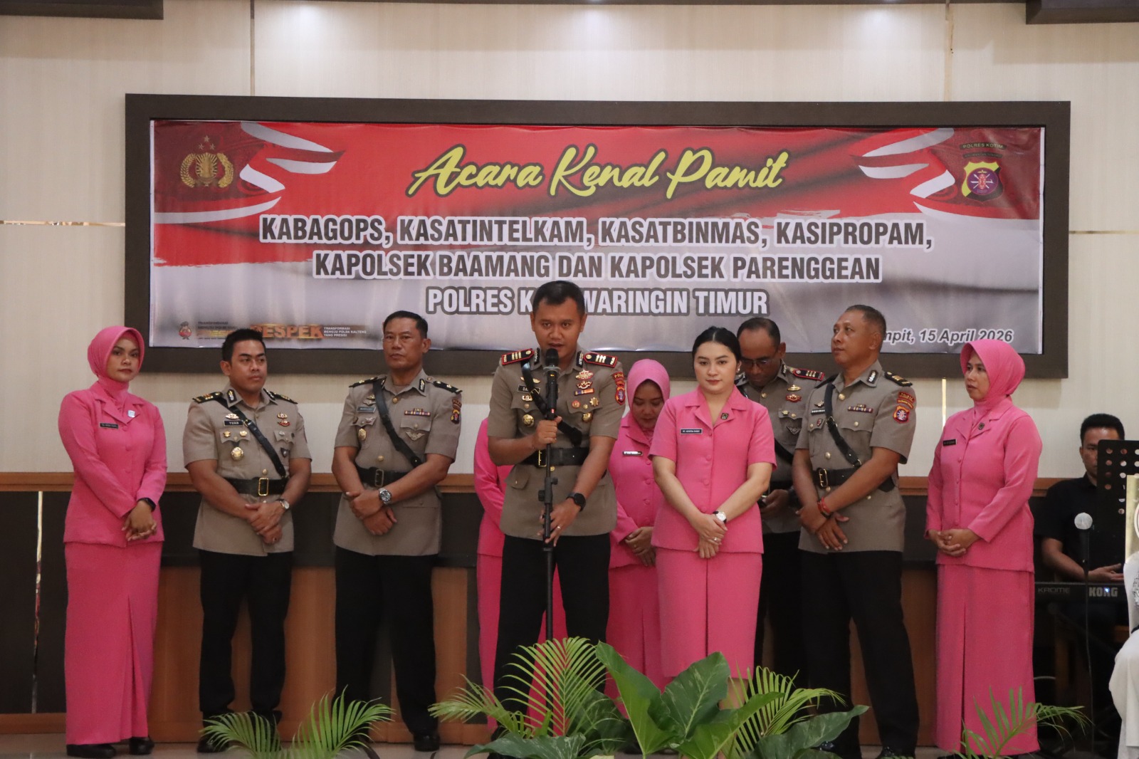 Sampit – Suasana haru bercampur keakraban menyelimuti Aula Tunggal Panaluan Polres Kotim saat digelarnya acara kenal pamit sejumlah pejabat utama, Kegiatan ini menjadi momen perpisahan penuh apresiasi sekaligus penyambutan hangat bagi para pejabat yang akan mengemban amanah baru di lingkungan Polres Kotim, pada hari Rabu pagi(15/04/26).