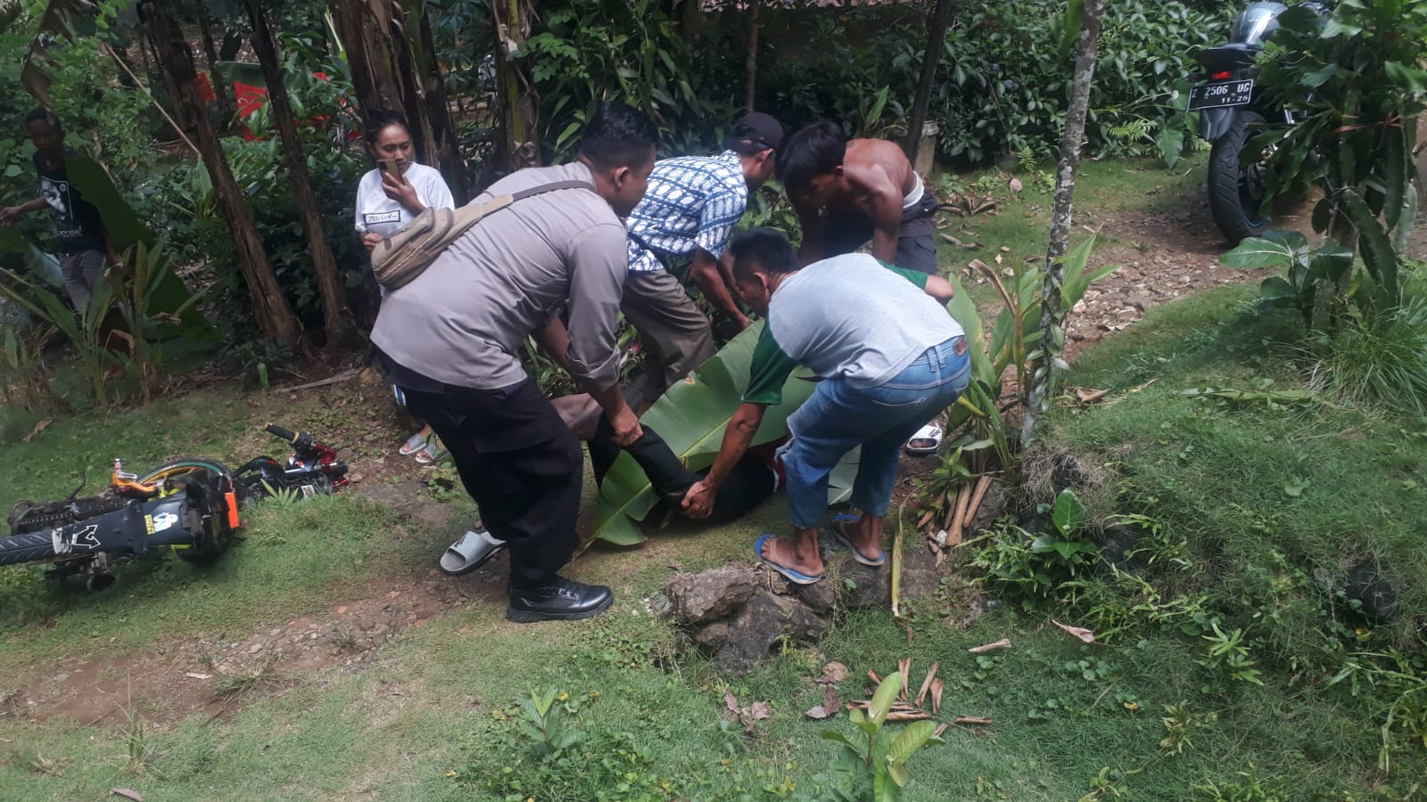 Bermula pada saat Anggota Polsek kalipucang ini sedang berpatroli melintasi jalan Jalan gununglenggang Dusun Cibadak Rt. 012 Rw.004 Ds. Emplak Kecamatan Kalipucang Kabupaten Pangandaran dan melihat ada sejumlah warga yang sedang berusaha melakukan penyelamatan terhadap Korban Laka lantas, kemudian dengan sigap personel Polsek kalipucang Aipda Apep wardiana, langsung membantu proses evakuasi tersebut.