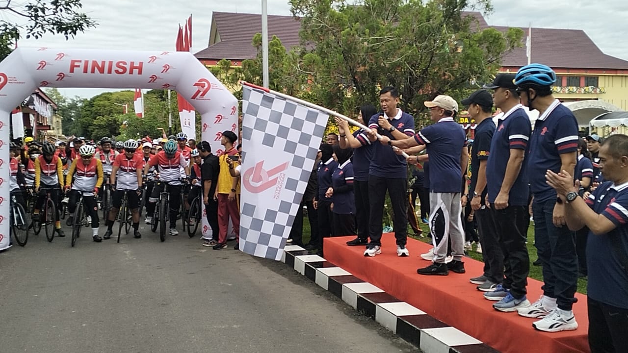 Palangka Raya – Polda Kalimantan Tengah (Kalteng) menggelar acara Jalan Sehat dan Sepeda Santai, bersama masyarakat dalam rangka menyemarakkan hari Bhayangkara ke -79, di Lapangan Barigas Mapolda setempat, Sabtu (21/6/2025) pagi.