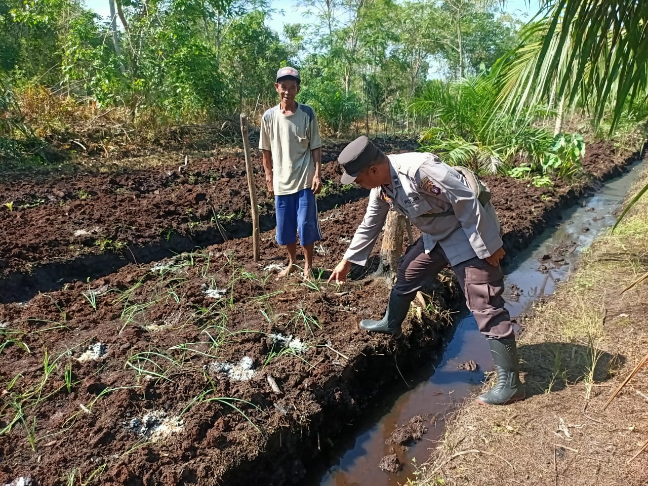 Pulau Hanaut – Wujud kepedulian terhadap sektor pertanian dan ketahanan pangan, Polisi Penggerak Aipda Suryadi, memberikan dukungan langsung kepada para petani agar memanfaatkan lahan pekarangan rumah, di wilayah Desa Rawa Sari Kec.Pulau Hanaut Kab.Kotim Prov.Kalteng, Kamis (26/6/2025).