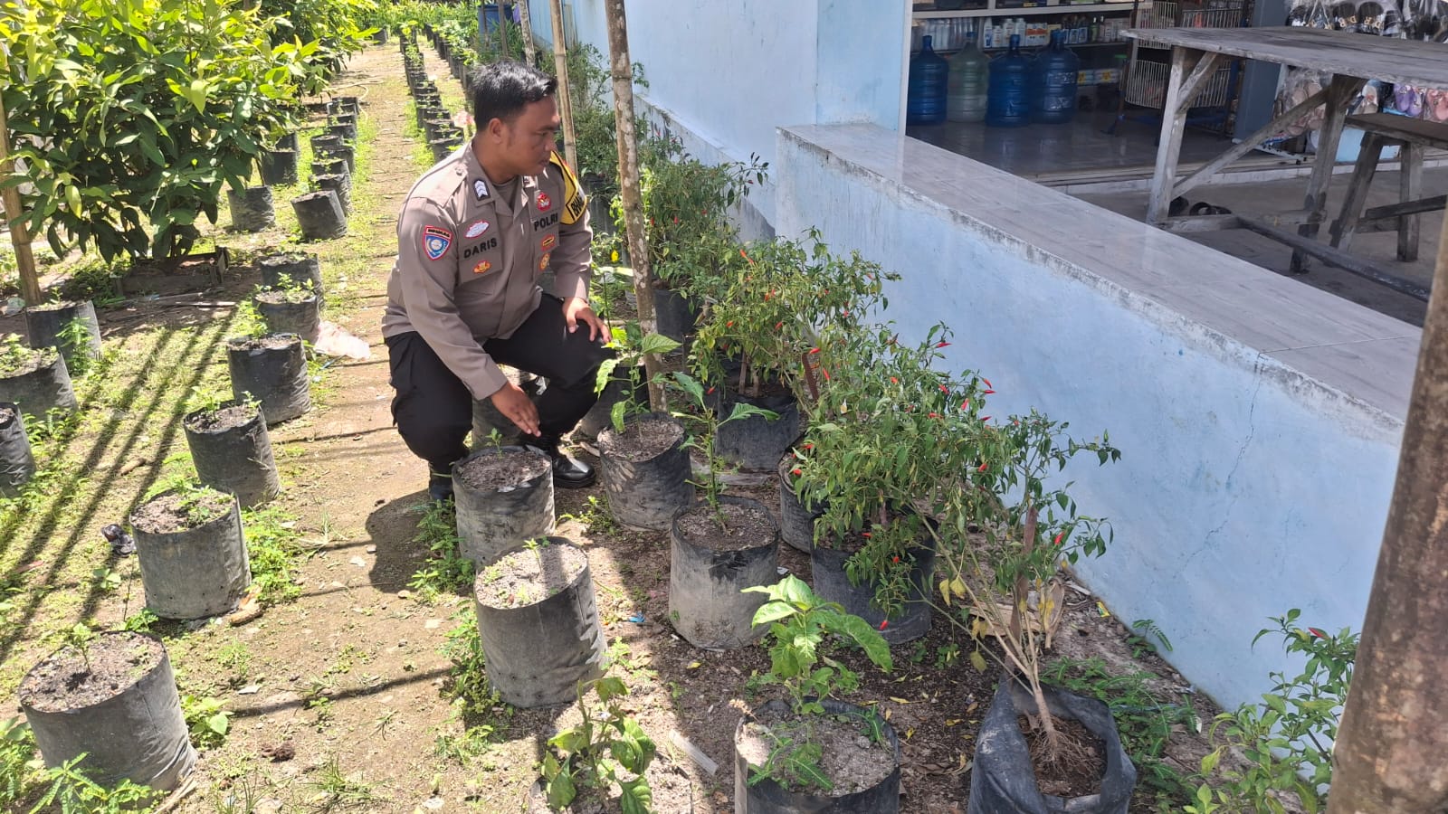 Dalam kegiatan itu, Brigpol Daris melakukan pengecekkan rutin ke pekarangan warga yang digunakaan untuk Menanam sayuran jenis Cabe, Bhabinkamtibmas juga memberikan motivasi kepada warga agar menjadikan pekarangan yang ada untuk mendukung ketahanan pangan baik dalam bidang Pertanian, Peternakan maupun Perikanan yang bermanfaat memenuhi sumber pangan masyarakat.
