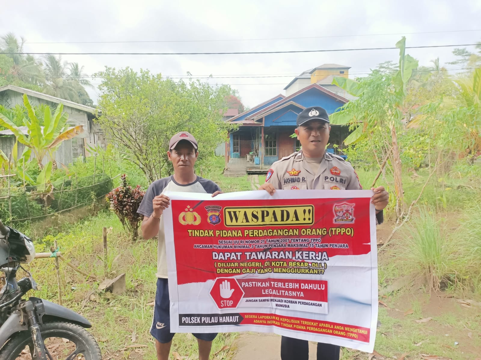Pulau Hanaut – Bhabinkamtibmas Polsek Pulau Hanaut Polres Kotim jajaran Polda Kalteng, gelar sosialisasi dan Himbauan terkait dengan Tindak Pidana Perdagangan Orang (TPPO), kepada Masyarakat diwilayah Kec. Pulau Hanaut Kab.Kotim, Minggu(08/3/2026) Pagi