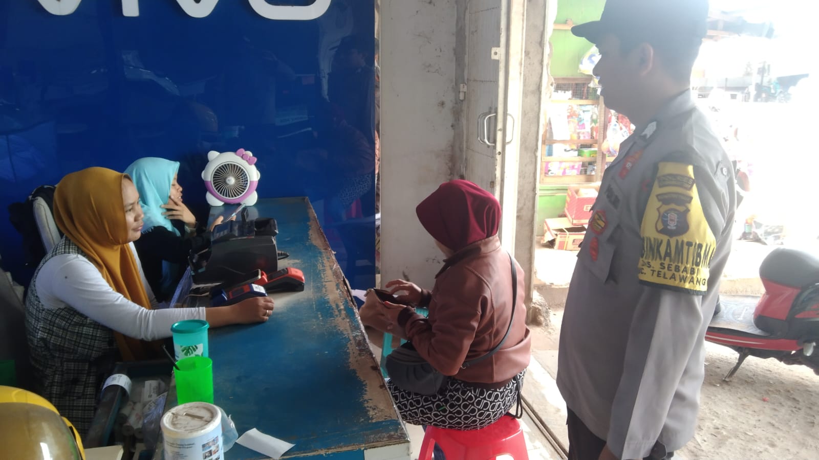 Kotim – Personel Polsek Telawang jajaran polres Kotim Polda Kalteng Bripka Rendra melaksanakan kegiatan sambang dan patroli dialogis di Pasar di desa Sebabi Kecamatan Telawang Kabupaten Kotim, Selasa (30/04/2024) pukul 09.00 WIB.