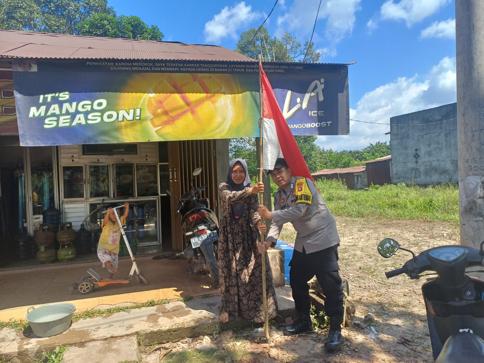 Semangat Hari Kemerdekaan RI,  Polsek Telawang dan Warga Pasang Bendera Merah Putih