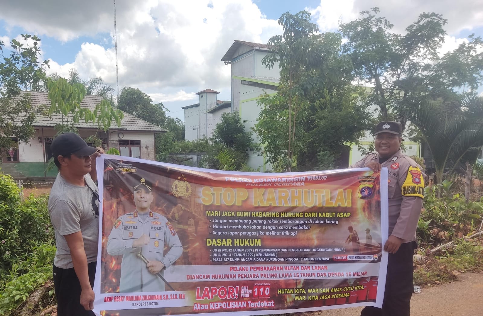 Sosialisasi dilakukan Bhabinkamtibmas Polsek Cempaga Brigpol Sugiadnor, SH dengan membentangkan spanduk larangan membakar hutan dan lahan, disamping itu juga menghimbau kepada warga agar tidak membuka lahan atau kebun dengan cara membakar serta mengajak masyarakat untuk membantu Polri dalam mencegah terjadinya kebakaran hutan dan lahan.