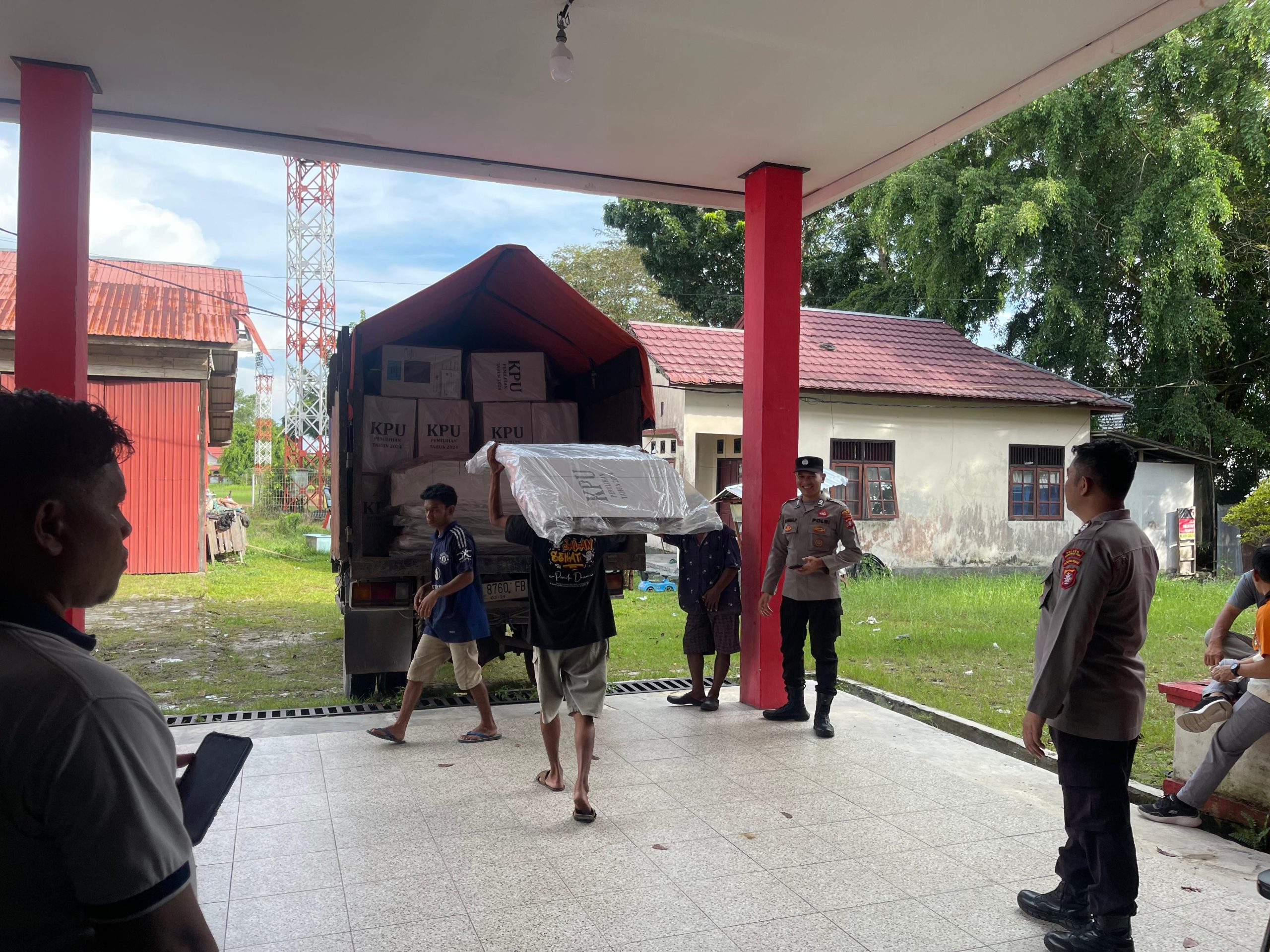 Polres Kotim – Padal Pam Logistik Polres Kotim Polda Kalteng Melaksanakan kegiatan pengecekan dan pengawasan pendistribusian surat suara dari Gudang Logistik ke Daerah Kecamatan Bukit Santuai, Telaga Antang, Antang Kalang dan Tualan Hulu