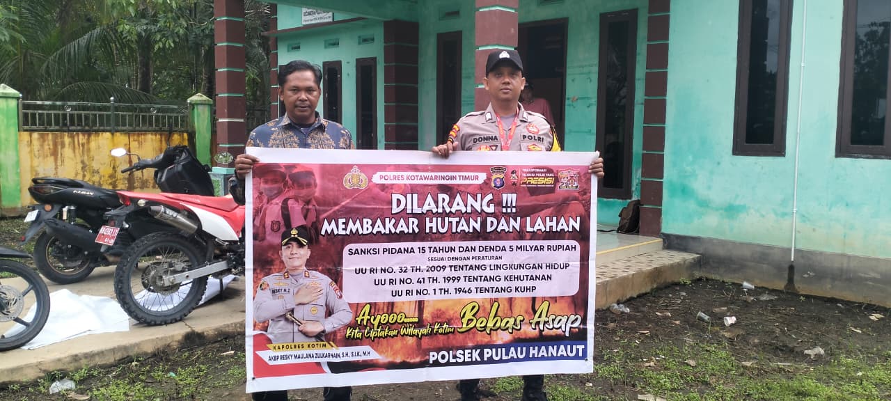 Kapolres Kotim jajaran Polda Kalteng AKBP Resky Maulana Zulkarnain, S.H., S.I.K., M.H. melalui Kapolsek Pulau Hanaut Iptu Purwono menjelaskan “bahwa masyarakat harus peduli dan harus mengetahui bahwa perbuatan membakar hutan dan lahan juga dapat berakibat sanksi hukum kepada pelakunya, disampaikan juga kepada masyarakat untuk tidak lagi membakar, karena apabila terbukti membakar walapun tujuannya membersihkan kebun, akan diproses hukum dengan sanksi penjara 15 tahun dan denda Rp 5 miliar”. Jelas Kapolsek.