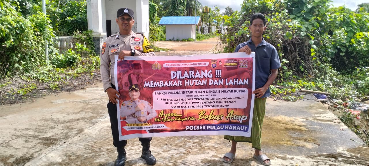 Kapolres Kotim jajaran Polda Kalteng AKBP Resky Maulana Zulkarnain, S.H., S.I.K., M.H. melalui Kapolsek Pulau Hanaut Iptu Purwono menjelaskan “bahwa masyarakat harus peduli dan harus mengetahui bahwa perbuatan membakar hutan dan lahan juga dapat berakibat sanksi hukum kepada pelakunya, disampaikan juga kepada masyarakat untuk tidak lagi membakar, karena apabila terbukti membakar walapun tujuannya membersihkan kebun, akan diproses hukum dengan sanksi penjara 15 tahun dan denda Rp 5 miliar”. Jelas Kapolsek.