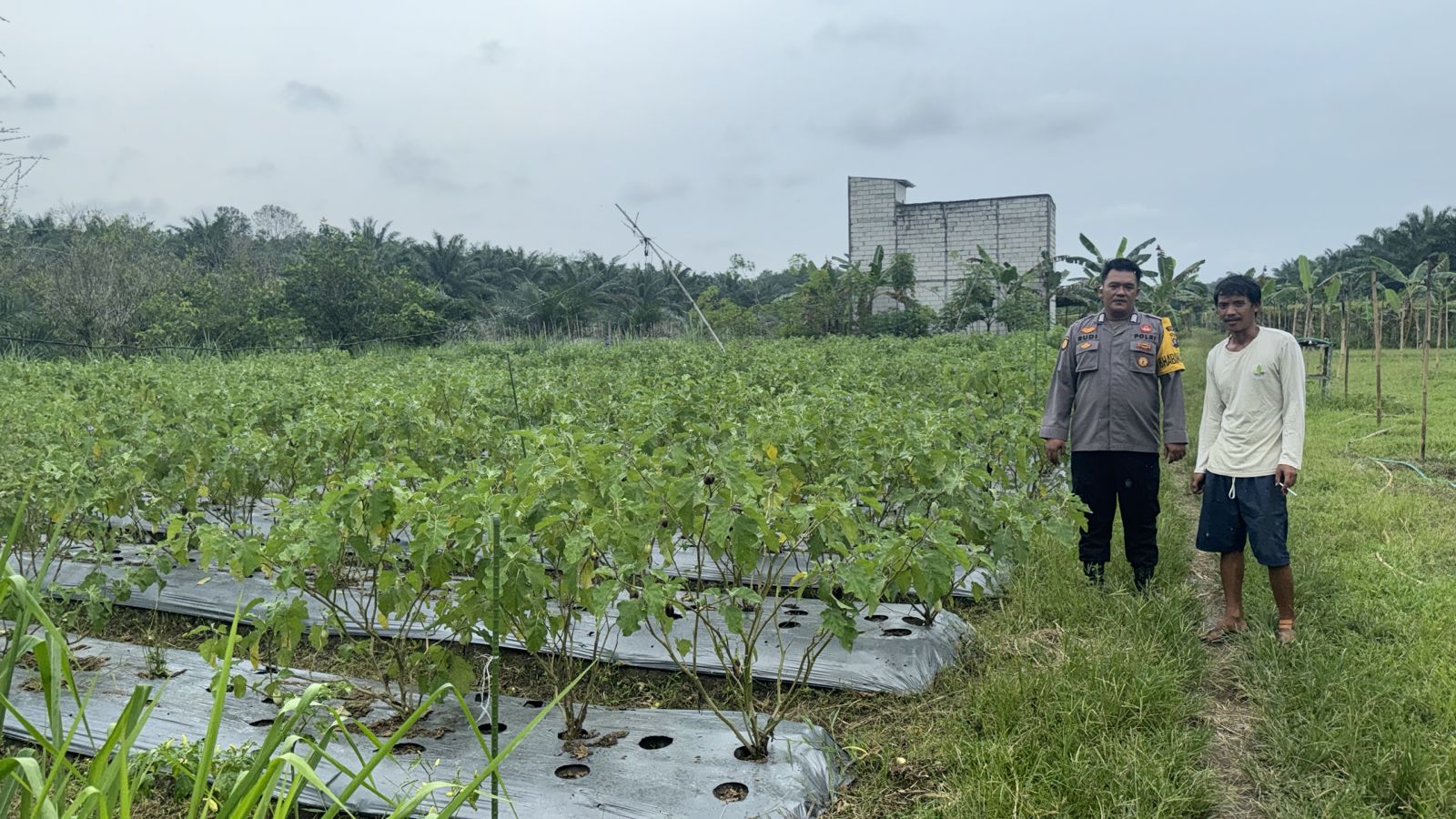 Dalam kegiatan tersebut, Bhabinkamtibmas Bripka Rudianur melakukan pengecekan terhadap pekarangan milik warga bernama Bapak wanto yang membudidayakan tanaman terong.