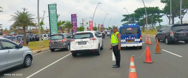 Guna mengurai kemacetan di area tersebut, Satlantas Polres Metro Tangerang Kota melaksanakan kegiatan pengaturan dan pengalihan arus lalin di tempat Wisata Pantai Aloha PIK 2 Teluknaga.