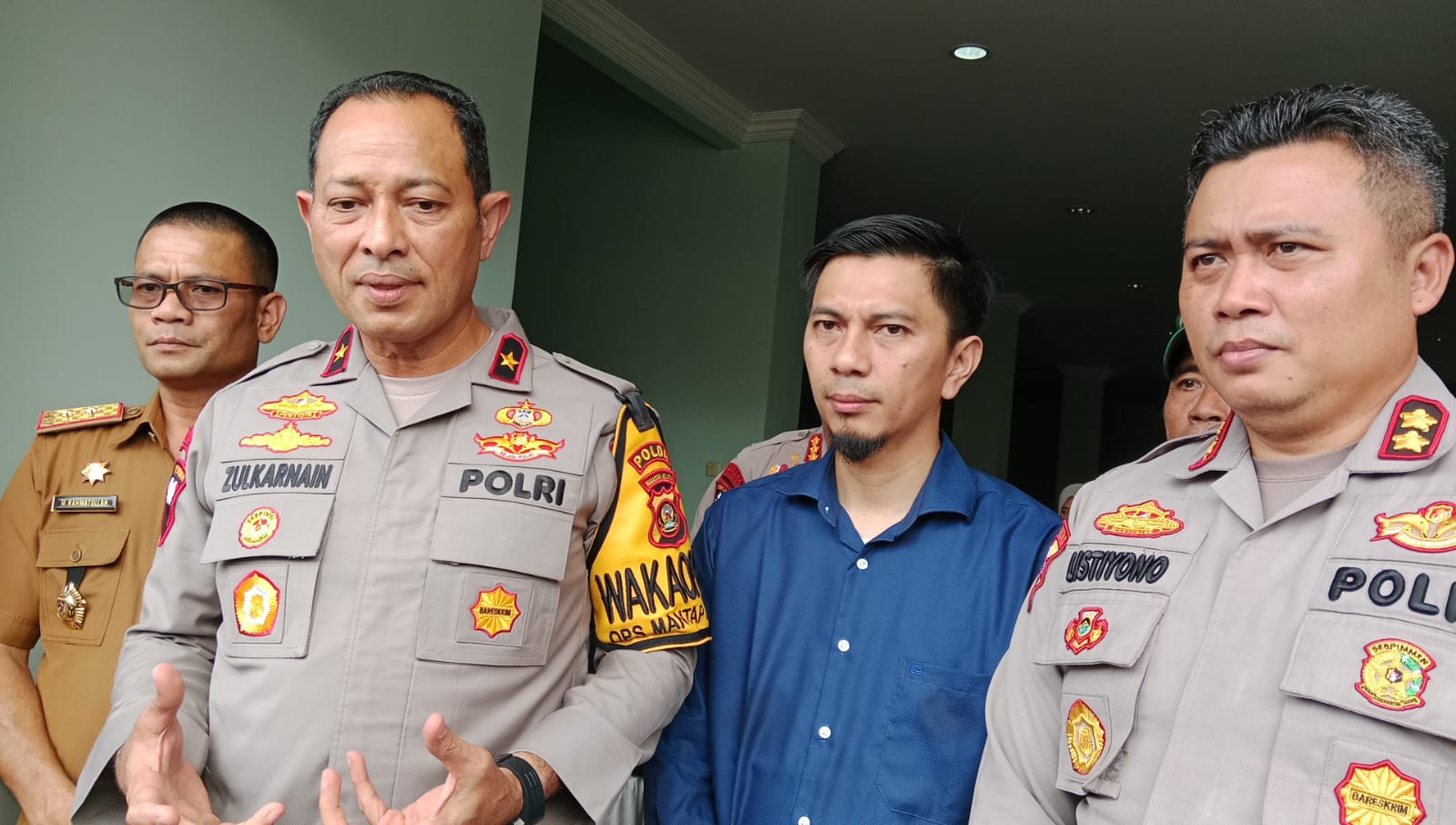 Wakapolda Sumsel dan rombongan didampingi oleh Dirkrimsus, Kacap Brimob Polda Sumsel, dan personel lainnya, disambut oleh Pemerintah Kabupaten OKU Selatan dan Kapolres OKU Selatan.