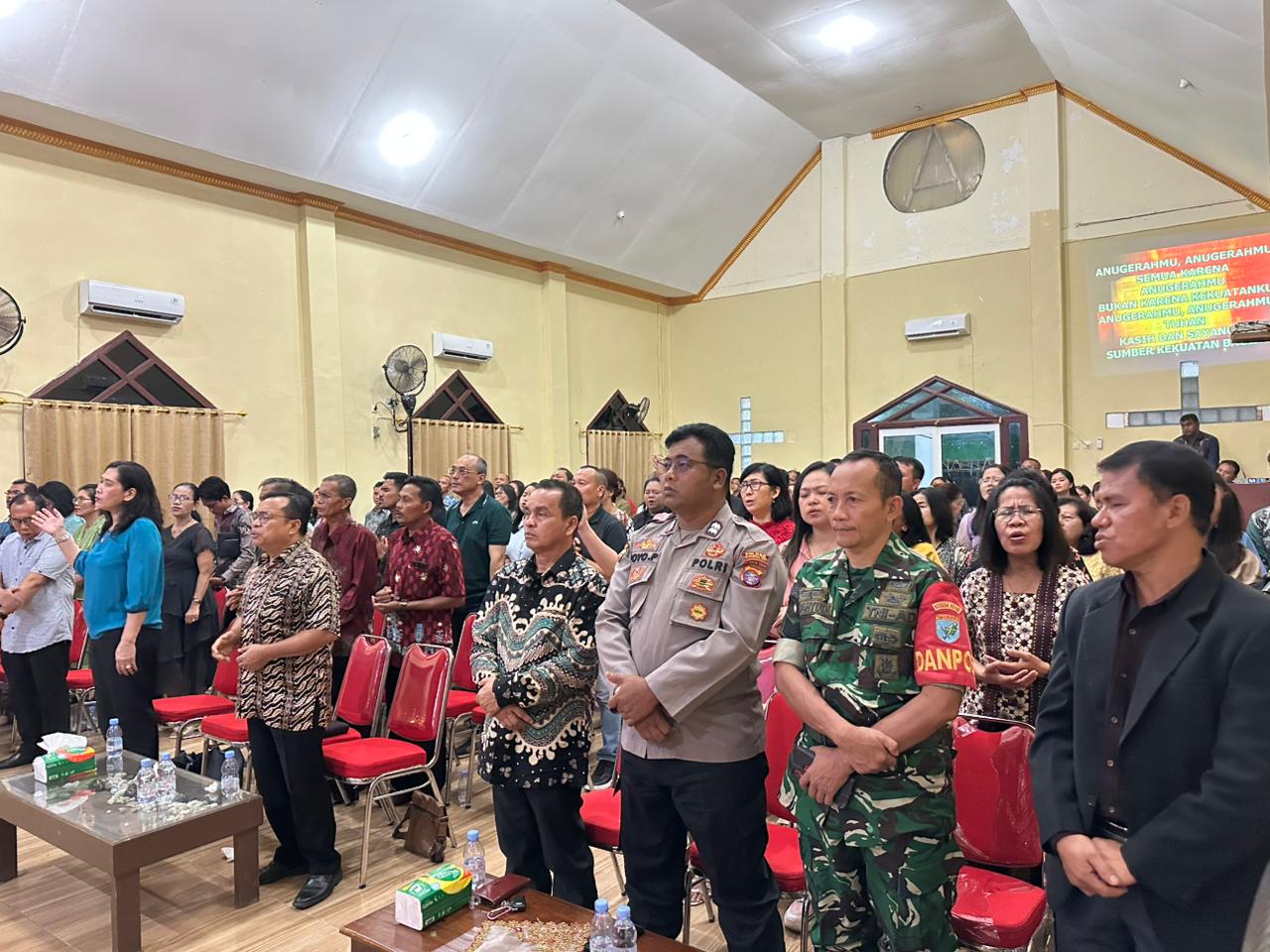 Kotim – Menjelang Natal Dan Tahun Baru 2025 serta menjaga dan memelihara situasi Kamtibmas agar tetap kondusif AIPTU YOYO PRASETIO, S.Sos selaku Kapolsubsektor telaga Antang polsek Antang kalang jajaran Polres Kotim Polda Kalteng melaksanakan pemgamanan ibadah natala di gereja ALFA OMEGA Desa Rantau TampangKec. Telaga Antang , Kamis(19/12/2024) Malam.