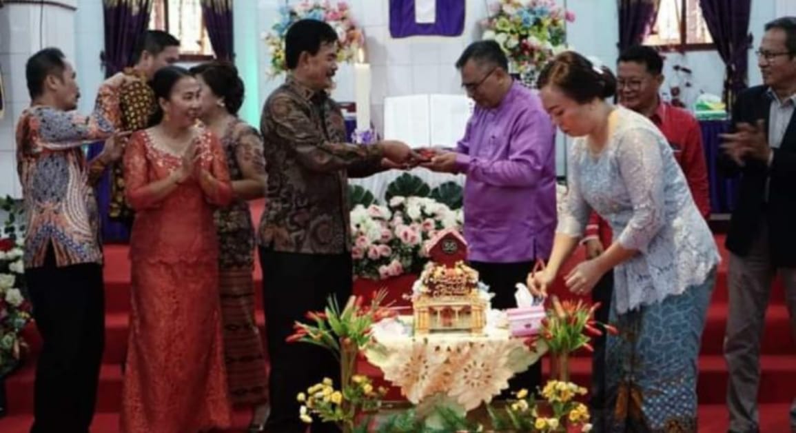Di penghujung acara oleh Ephorus Gereja ONKP meniup lilin untuk perayaan ulang tahun Gereja ONKP Jemaat Tetesua yang ke-55.