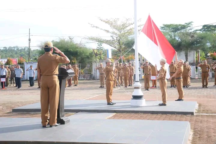 Baraknews Nias barat–Bupati Nias Barat Khenoki Waruwu bertindak sebagai pembina upacara penaikan Bendera di lingkungan pemerintah Kabupaten Nias Barat yang dilaksanakan di Halaman Kantor Bupati Nias Barat, Senin (4/12/2023).