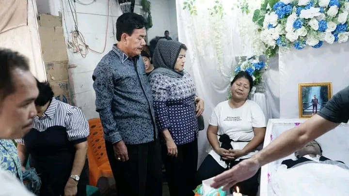 Kabupaten Nias Barat — Bupati Nias Barat Khenoki Waruwu beserta Istri, Ny. Erli Tasar Khenoki Waruwu, didampingi Kadis Pendidikan, Kadis Kesehatan, Kaban PKPD, Camat Lolofitu Moi, Kapolsek Sirombu melayat di rumah Ama/Ina Putra Halawa atas meninggalnya Felix Forusman Halawa di Desa Tuwuna. Rabu, 30 /11/23.