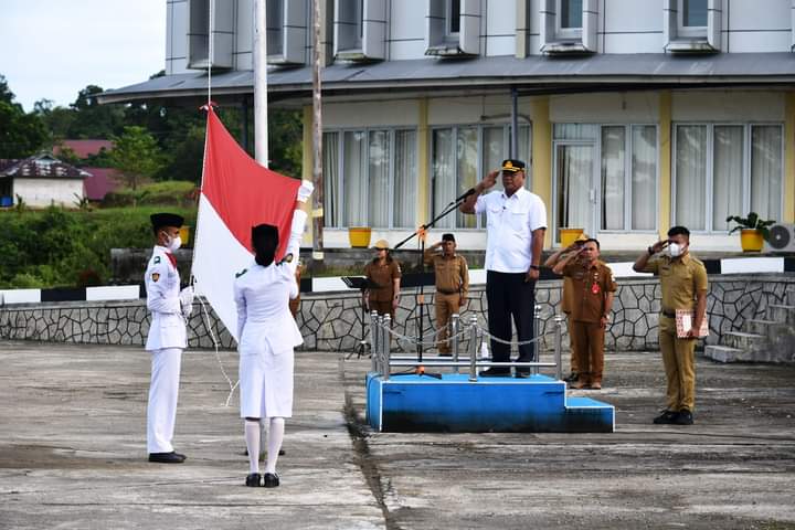Baraknews Nias Utara,(sumut)-Bupati Nias Utara memimpin Upacara Penaikan Bendera Merah Putih di Lingkup Pemkab Nias Utara, upacara tersebut di ikuti oleh Sekda, Staf Ahli, Asisten, Kepala OPD Lingkup Pemkab Nias Utara, seluruh ASN dan THL Lingkup Pemkab Nias Utara, yang dilaksanakan di halaman Kantor Bupati Nias Utara Jalan Gowe Zalawa, Desa Fadoro fulolo Kec. Lotu.senin 04 Juli 2022