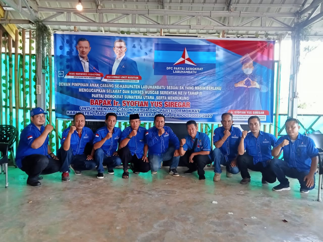 Baraknews Labuhanbatu– Jelang Musyawarah Cabang (Muscab) Partai Demokrat Kabupaten Labuhanbatu, terus mengalir terhadap Ir. Sofyan Yus Siregar untuk menjadi Ketua DPC, Terutama mayoritas Ketua DPAC Partai Demokrat Se – Kab. Labuhanbatu.