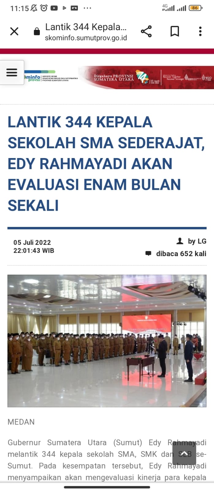 Baraknews Sumatera Utara–Pada tanggal 07/07/2022 awak media mendapat informasi terkait Pelantikan mendadak Kepala Sekolah sebanyak 344 Kepala sekolah, yang di minta keterangan yang tidak mau di sebutkan namanya, bahwa Banyak Kepala Sekolah yang di lantik ternyata tidak memenuhi syarat menjadi kepala sekolah yang di lantik oleh Gubernur Edy Rahmayadi, juga tidak ada guru penggerak, yang tertuang di peraturan permendikbud “Dalam permendikbud Nomor 40 tahun 2021 disebutkan bahwa guru dapat diberikan tugas sebagai kepala sekolah untuk memimpin dan mengelola sekolah dalam upaya meningkatkan mutu pendidikan sesuai dengan transformasi pembelajaran yang berpihak kepada peserta didik”