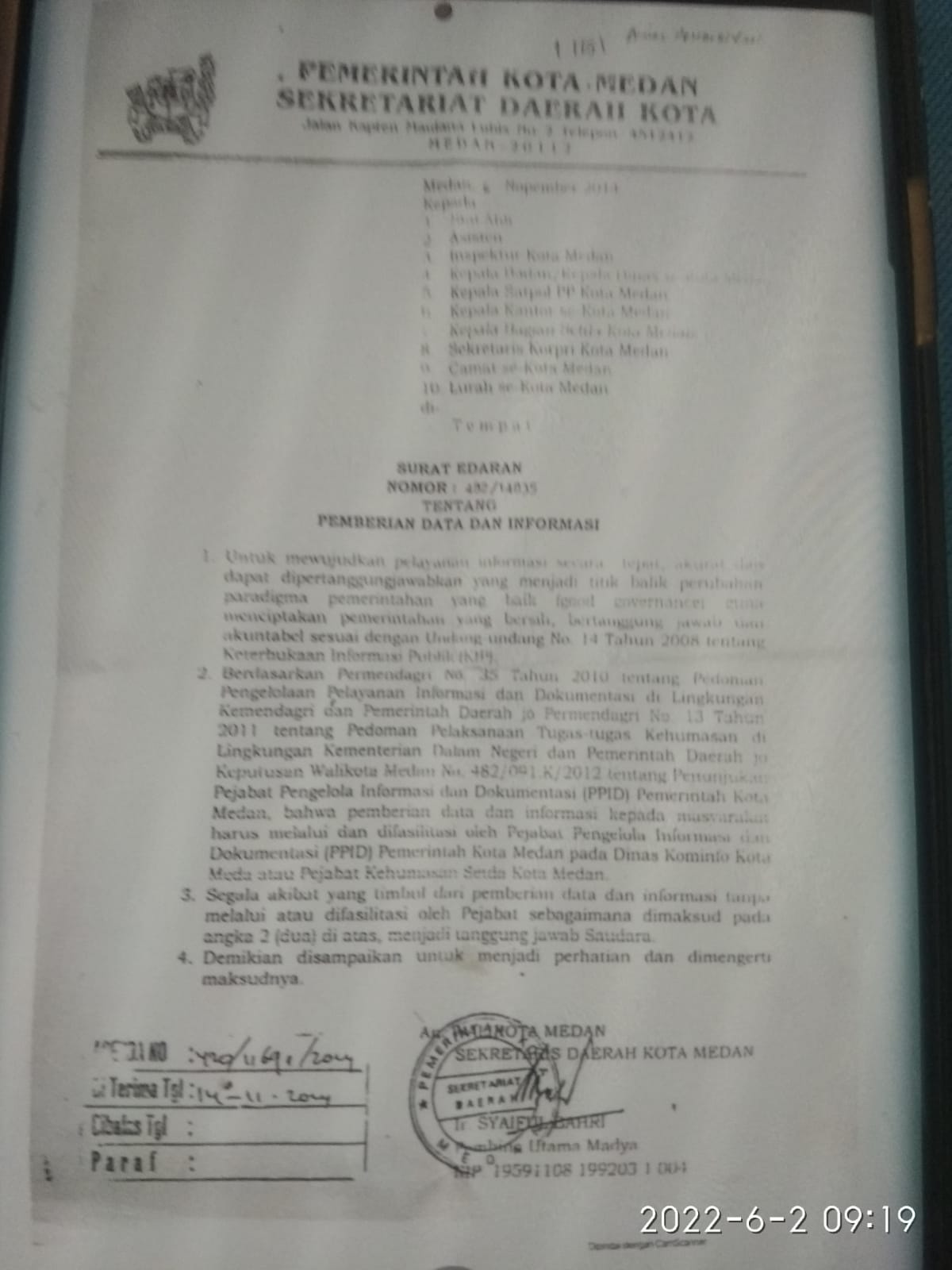 Sedangkan peraturan yang tercantum itu untuk Inspektorat kota medan, sekretaris kopri kota Medan, Kepala Satpol PP, dll, yang ada 10 tertulis di gambar.